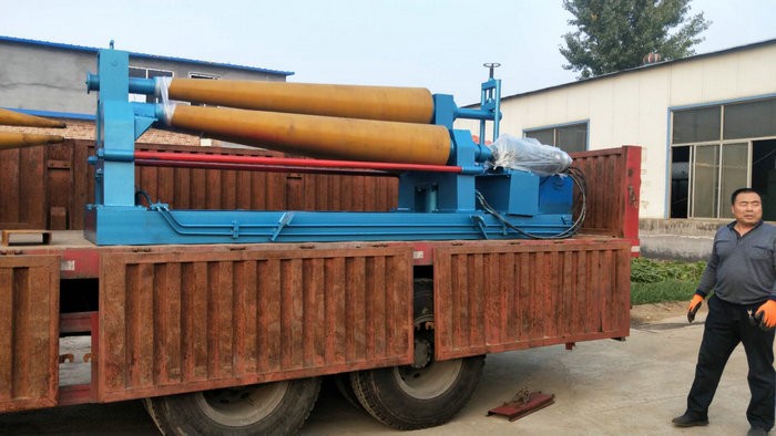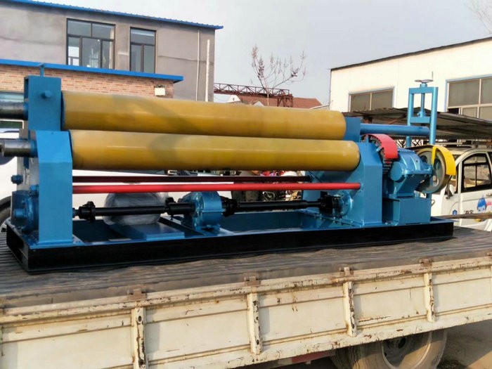 不锈钢铝板专用草莓视频APP下载安装,表面挂聚氨酯,可以防止表面有划痕. 该机结构型式为三辊对称式,上辊在两下辊 对称位置作垂直升降运动,通过丝杆丝母蜗杆传动而获得,两下辊作旋转运动,通过减速机的输出齿轮与下辊齿轮啮合,为卷制板材提供扭矩。上辊可分离取料电动升降起辊。可安装靠轮卷制锥体、角铁、槽钢等异异型钢材。